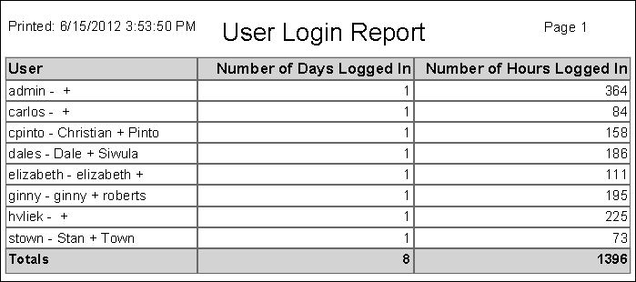 User Login Summary Report