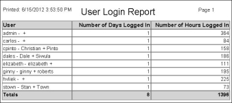 Configuration > Security and User Maintenance > User Login Summary Report > Print User Login Summary Report