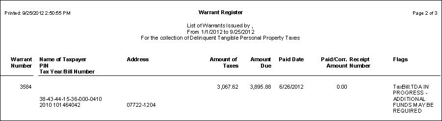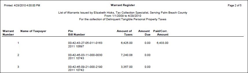 Tax > Delinquents > Warrants > Warrant Register List